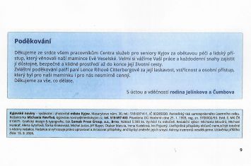 Také chci poděkovat za zdravotní péči paní Kusákové a zdravotním sestrám. Paní Kusáková mě vždy informovala při změně zdravotního stavu nebo omezení návštěv. V její součinnosti jsem mohla manžela doprovázet do nemocnice na potřebné zákroky. Když se manželův zdravotní stav zhoršil, tak byla péče, hlavně sester, intenzivnější.